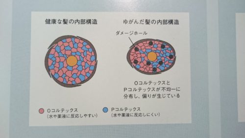 コルテックス分布も不均一になり髪ゆがみが生じ、