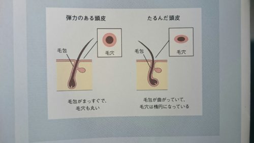 また、頭皮のたるみによって毛穴の形もゆがみ