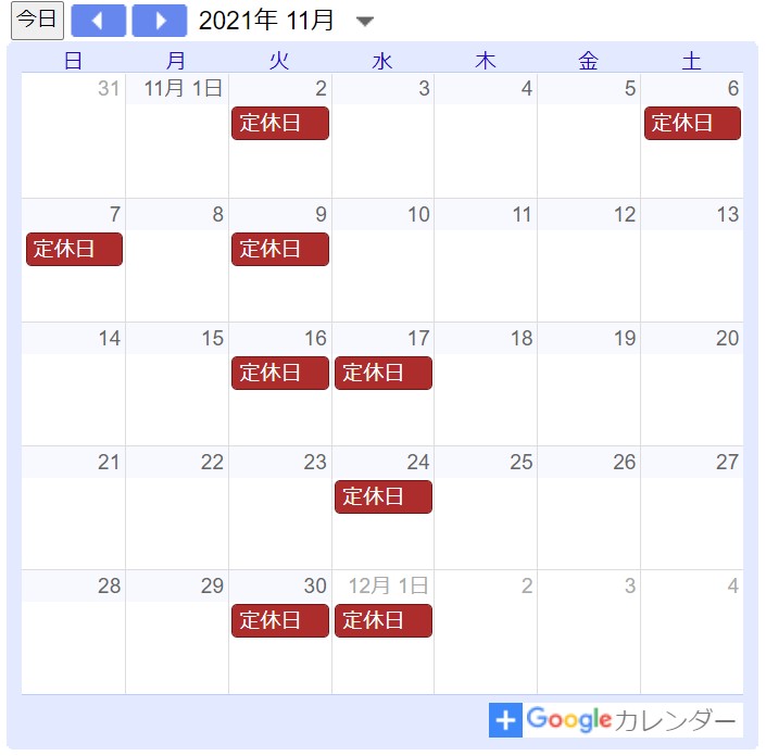 【サロン情報・定休日】2021年11月の定休日のお知らせ♪