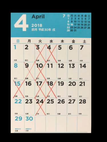 【4月の定休日】4月は少し変則になっていますのでご確認を!