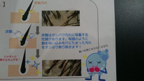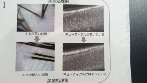 炭酸なので地肌の粒子や血管まで浸透し、血管を拡張して血流促進。