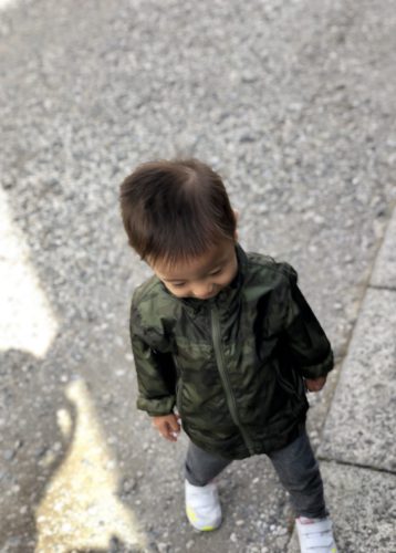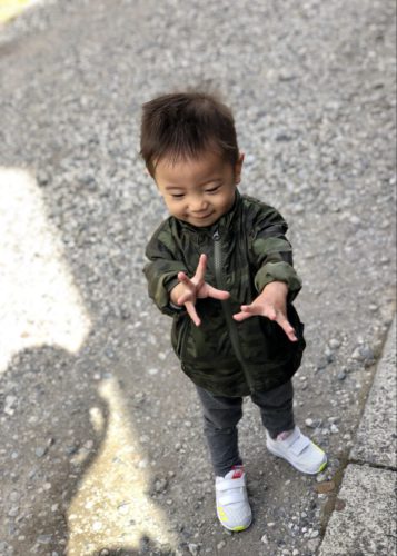 いつもなら抱っこして車に乗せて保育園に向かうが
