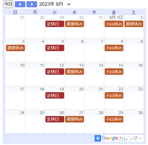 【サロン情報・定休日】2023年9月の定休日のお知らせ♪