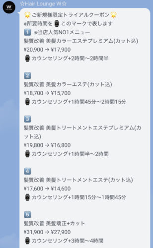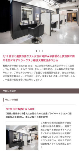 上記のURLがホットペッパービューティー上のHair Lounge Wのページになります。