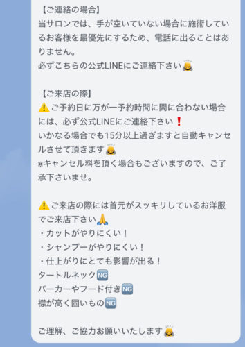※当サロンでは、お電話に出れないケースもあるため公式LINEでのご予約を推奨しています。