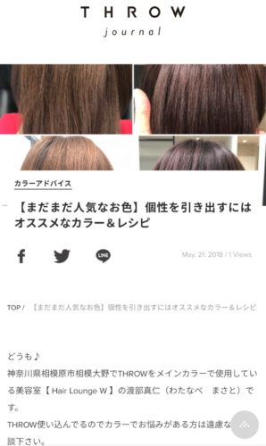 ヘアカラーに特化した毎日役立つ美容情報を、美容院・美容室・ヘアサロンのスタイリストがお届けするWEBマガジン「THROW JOURNAL」