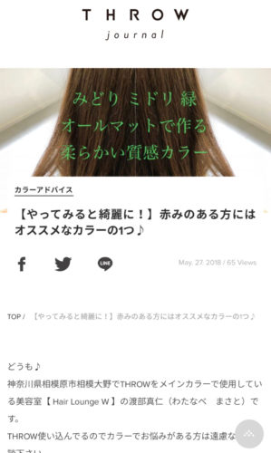ヘアカラーに特化した毎日役立つ美容情報を、美容院・美容室・ヘアサロンのスタイリストがお届けするWEBマガジン「THROW JOURNAL」