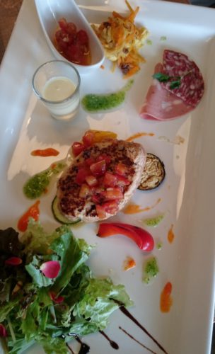 1つのプレートにサラダ、スープ、オードブルが一緒になっていました!!