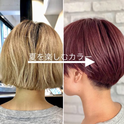【ブリーチて夏のワンメイクカラー】 夏を楽しむクールなショートボブにスロウカラーは暗めもオススメ!