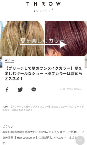 ヘアカラーに特化した毎日役立つ美容情報を、美容院・美容室・ヘアサロンのスタイリストがお届けするWEBマガジン「THROW JOURNAL」