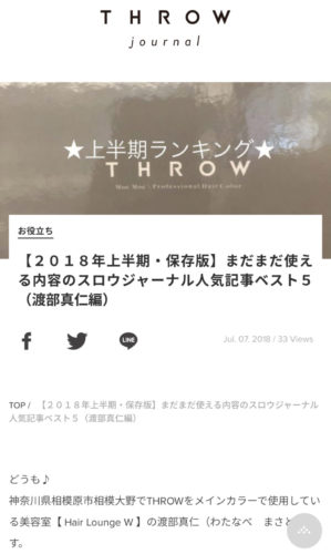 ヘアカラーに特化した毎日役立つ美容情報を、美容院・美容室・ヘアサロンのスタイリストがお届けするWEBマガジン「THROW JOURNAL」