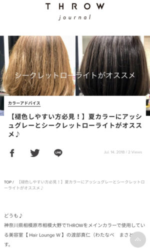 ヘアカラーに特化した毎日役立つ美容情報を、美容院・美容室・ヘアサロンのスタイリストがお届けするWEBマガジン「THROW JOURNAL」
