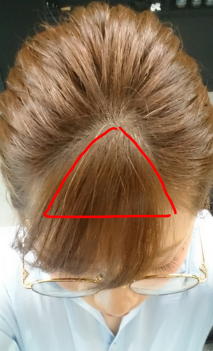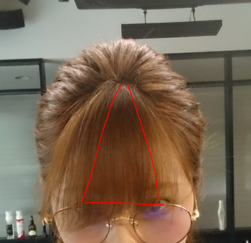 前髪の部分は▲三角に取り分け、カットしてあると思います。