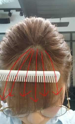 ⑤髪の毛を持つ際、あまり力を入れて引っ張らないでカットする!