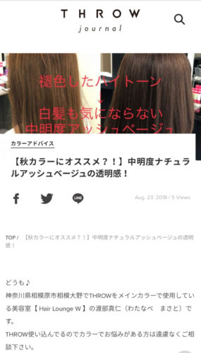 ヘアカラーに特化した毎日役立つ美容情報を、美容院・美容室・ヘアサロンのスタイリストがお届けするWEBマガジン「THROW JOURNAL」