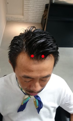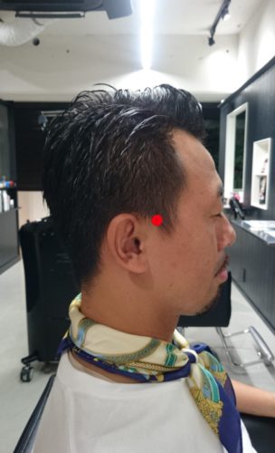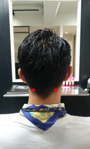 最後に、風池からまた少し襟足に向かって下がったところ。