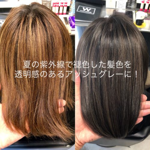 夏の紫外線で褪色した髪色に色味と透明感を♪