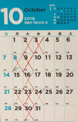 10月の定休日