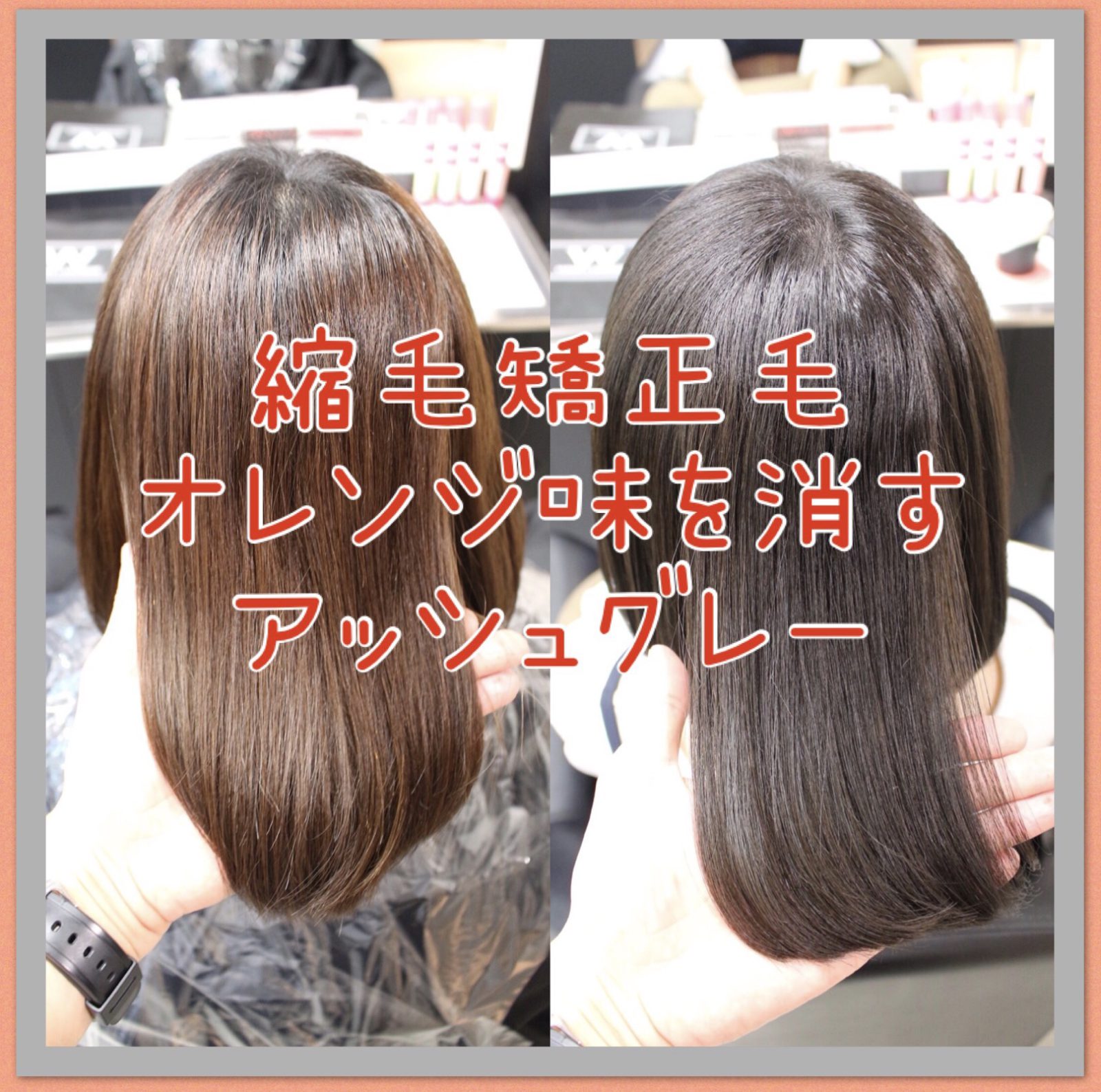 【縮毛矯正+カラー】スロウカラー★アッシュグレー★透明感と柔らかさと艶感を♪