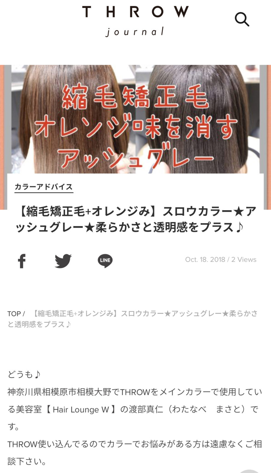 どうも♪ 神奈川県相模原市相模大野でTHROWをメインカラーで使用している美容室【 Hair Lounge W 】の渡部真仁(わたなべ まさと)です。