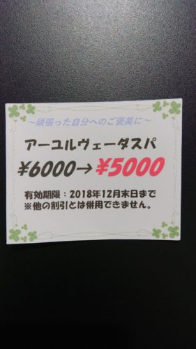 11月の中旬からお客様にお配りさせていただいているこの割引券。