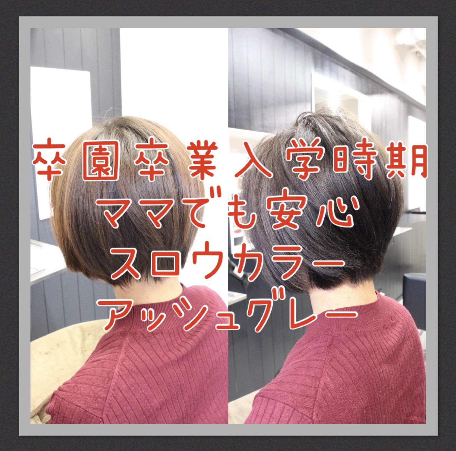 【卒園・卒業・入学にもピッタリな髪色】ママでも安心して出来るスロウカラーのアッシュグレー♪