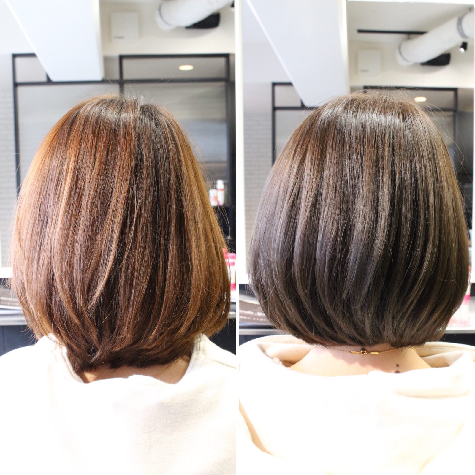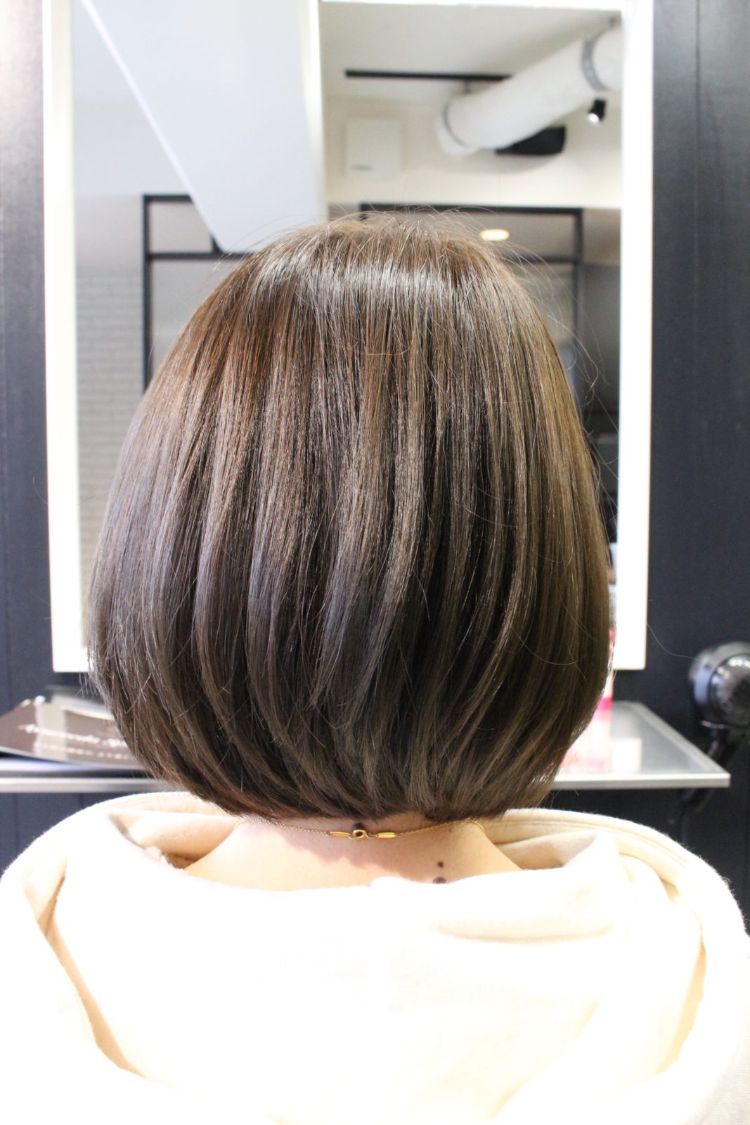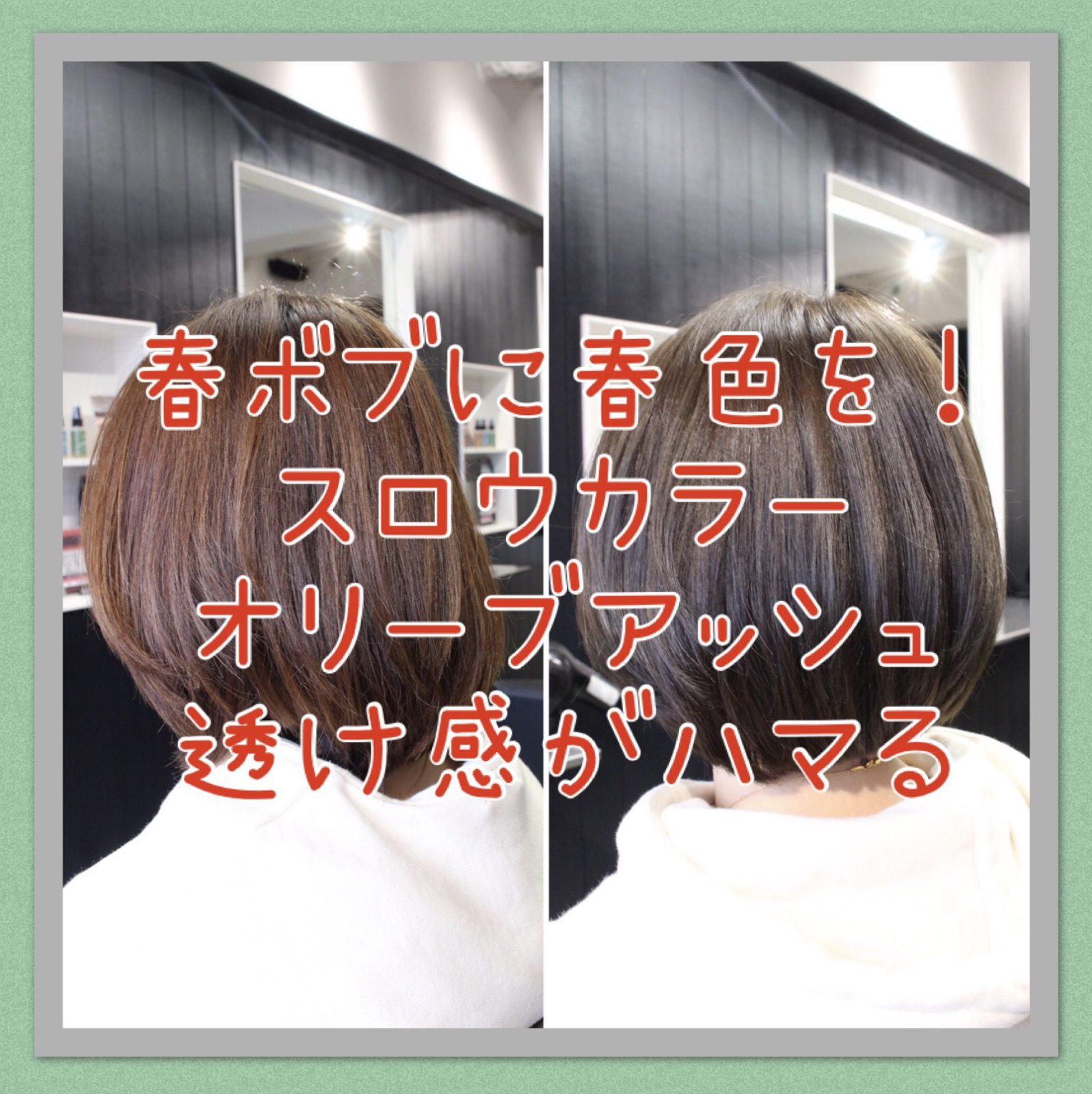 【春ボブには春色を!】スロウカラーのオリーブアッシュの透け感が春ボブにピッタリ★