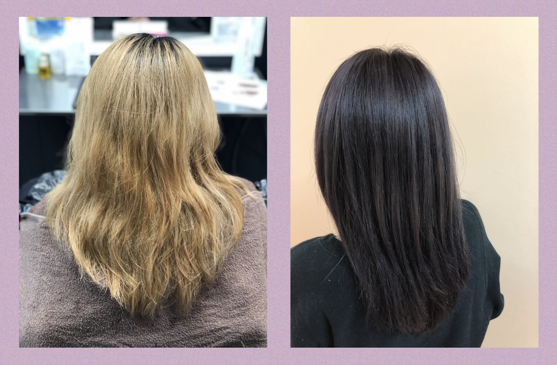 タイトル通りにブリーチしている髪を一気にトーンダウンさせる記事の内容になります。