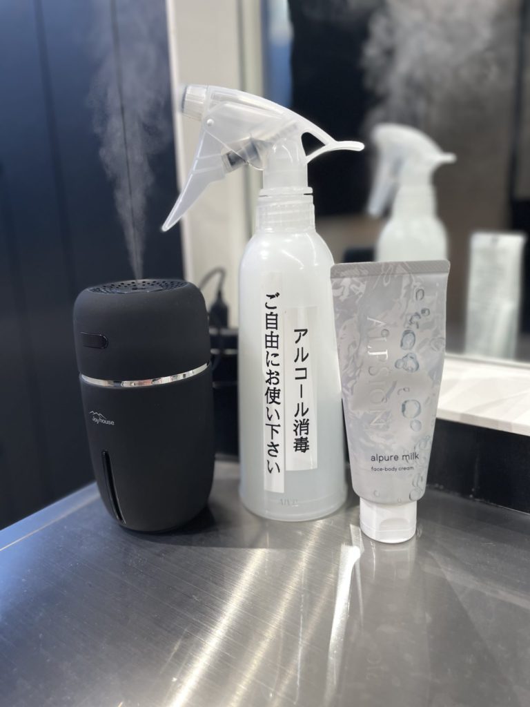 ☆各セット面の加湿器完備とアルコールミストとノンアルコール除菌抗菌ハンドクリーム