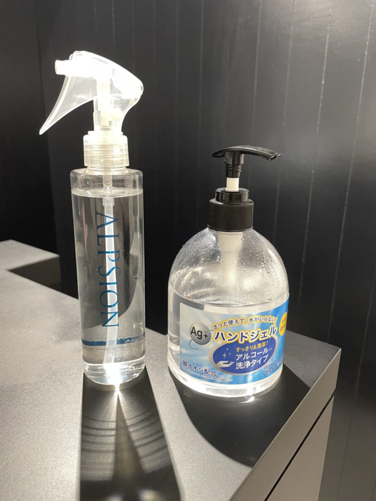 ☆フロントのアルコールハンドジェルとノンアルコールの除菌・消毒ミスト