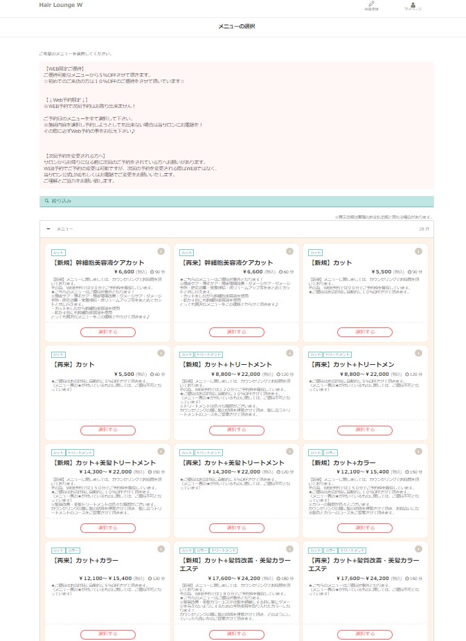 WEB予約のメニュー選択画面を少し変更いたしました!