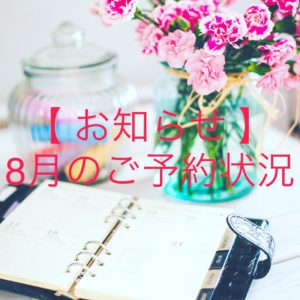 【8月のご予約状況】ご予約はお早めに!ご確認下さい。(8月25日更新)