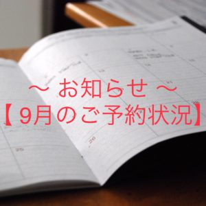 【ご予約状況のお知らせ】9月のご予約状況はこちらからご確認下さい♪(9月24日・更新)